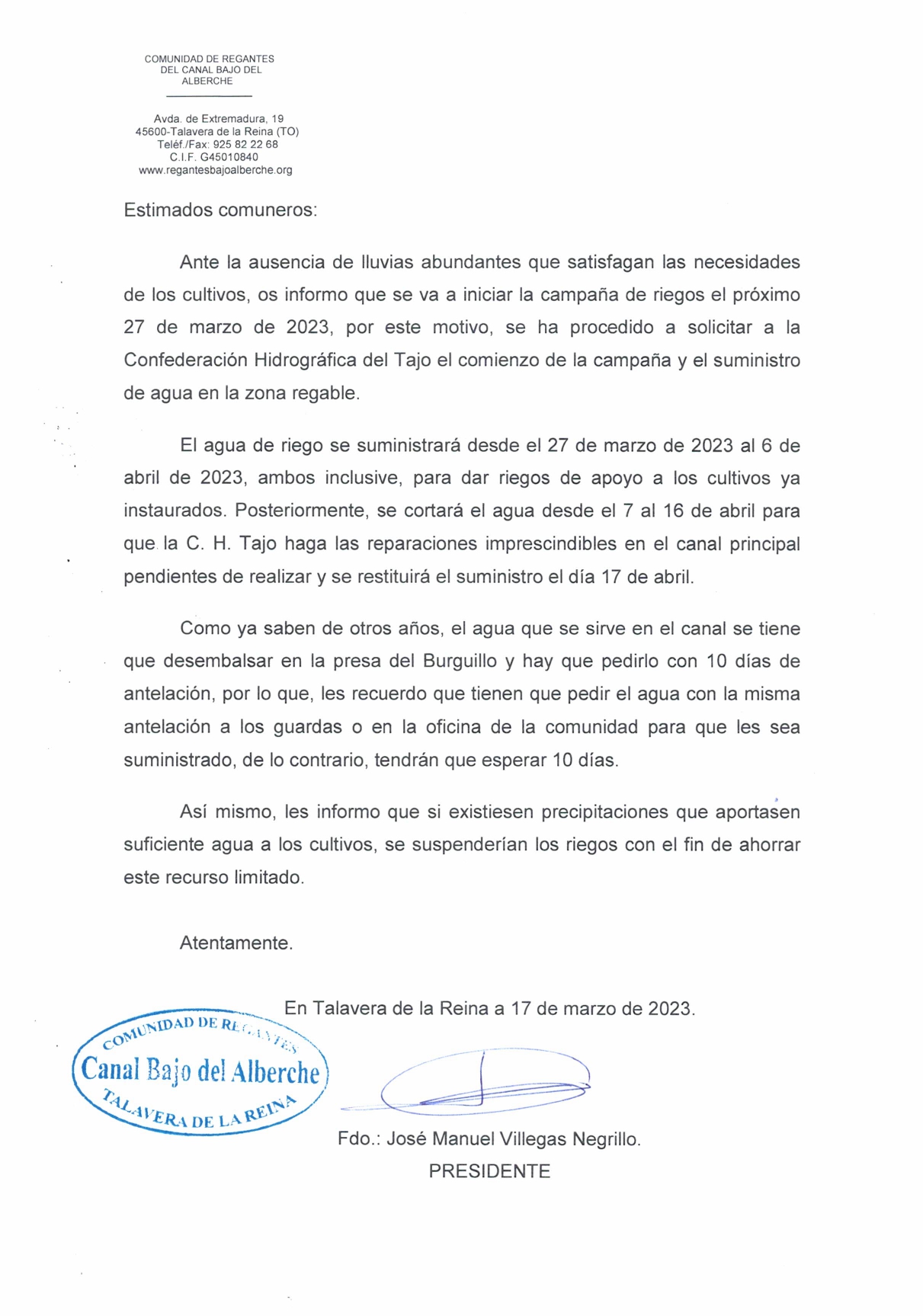 Oficio Fusión Comunidades de Regantes
